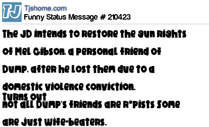 X is The JD intends to restore the gun rights of Mel Gibson, a personal friend of Dump, after he lost them due to a domestic violence conviction.