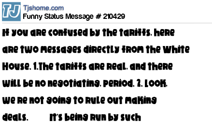 X is If you are confused by the tariffs, here are two messages directly from the White House. 1.The tariffs are real, and there will be no negotiating, period. 2. Look, weโre not going to rule out making deals. ๐ It's being run by such incompetent idiots.