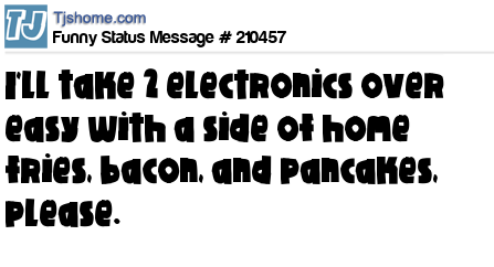 - # 210458 "I'll take 2 electronics over easy with a side of home fries, bacon, and pancakes, please." China thanks you 🇨🇳
