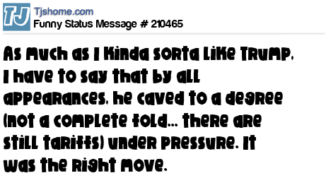 X says As much as I kinda sorta like Trump, I have to say that by all appearances, he caved to a degree (not a complete fold... there are still tariffs) under pressure. It was the right move.