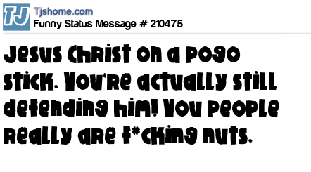 X is Jesus Christ on a pogo stick. You're actually still defending him! You people really are f*cking nuts.