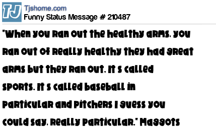 - # 210486 "When you ran out the healthy arms, you ran out of really healthy they had great arms but they ran out. It’s called sports. It’s called baseball in particular and pitchers I guess you could say, really particular." The Absolute Ret*rd Apr 07, 2025