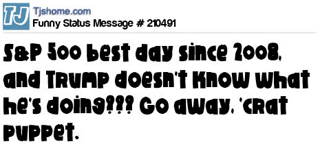 X says S&P 500 best day since 2008, and Trump doesn't know what he's doing??? Go away, 'crat puppet.