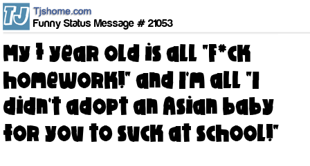 X my 7 year old is all "F*ck homework!" and I'm all "I didn't adopt an Asian baby for you to suck at school!"