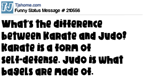 X says What's the difference between Karate and Judo?  Karate is a form of self-defense. Judo is what bagels are made of.