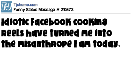 X says Idiotic Facebook cooking reels have turned me into the misanthrope I am today.