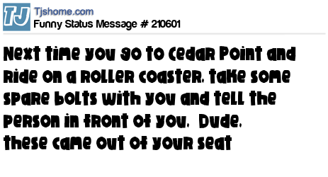 X says Next time you go to Cedar Point and ride on a roller coaster, take some spare bolts with you and tell the person in front of you, “Dude, these came out of your seat