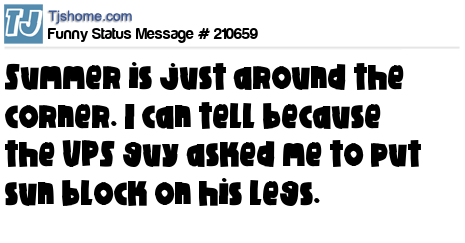 X says Summer is just around the corner. I can tell because the UPS guy asked me to put sun block on his legs.