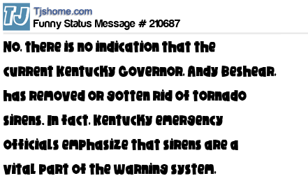 - # 210681 He won Kentucky by 26 points then immediately disabled their tornado warning systems, leading to 18 deaths. Hahahahaha. As someone who doesn't live there, in that country I mean, I find news like this very, very entertaining and funny 😂