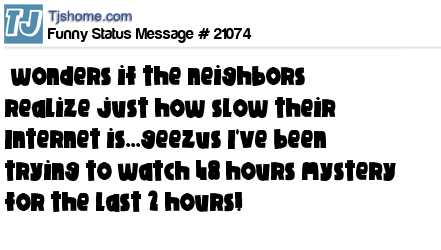 X wonders if the neighbors realize just how slow their Internet is...geezus I've been trying to watch 48 hours mystery for the last 2 hours!
