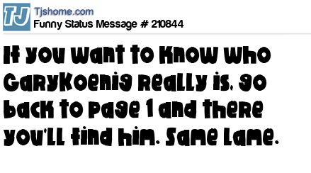 X says If you want to know who GaryKoenig really is, go back to page 1 and there you'll find him. Same lame.