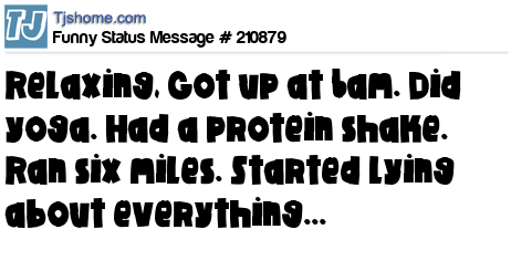 X says Relaxing, Got up at 6am. Did yoga. Had a protein shake. Ran six miles. Started lying about everything...