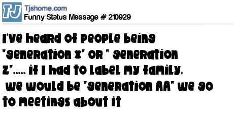 X says I've heard of people being "generation x" or " generation z"..... if I had to label my family, we would be "generation AA" we go to meetings about it