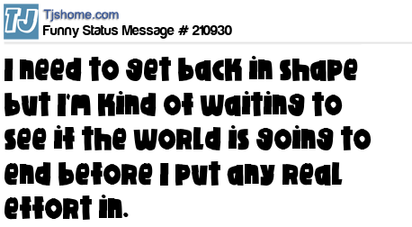X is I need to get back in shape but I'm kind of waiting to see if the world is going to end before I put any real effort in.