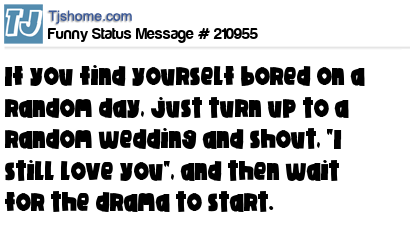 X is If you find yourself bored on a random day, just turn up to a random wedding and shout, "I still love you", and then wait for the drama to start.