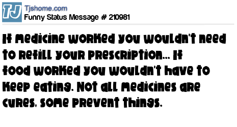 X says If medicine worked you wouldn't need to refill your prescription... If food worked you wouldn't have to keep eating. Not all medicines are cures, some prevent things.