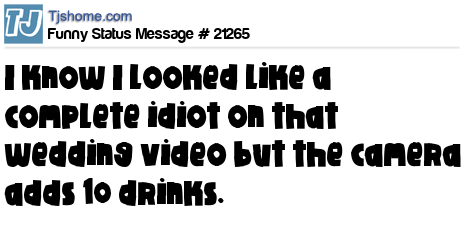 X I know I looked like a complete idiot on that wedding video but the camera adds 10 drinks.