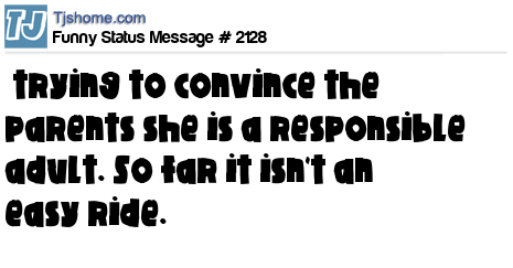 X is trying to convince the parents she is a responsible adult. So far it isn't an easy ride.