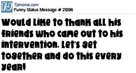 - # 167735 Nowadays the only way to get friends to hang out all night is if one of us needs an intervention.