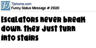 - # 14019 I like escalators because an escalator can never break; it can only become stairs. You'll never see an Escalator Temporarily Out Of Order sign, just Escalator Temporarily Stairs. Sorry for the convenience. We apologize that you can still...get up there.