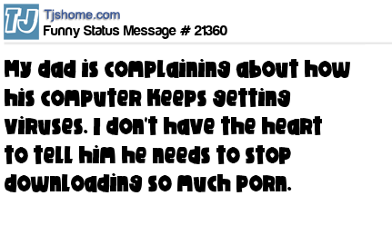 X is My dad is complaining about how his computer keeps getting viruses. I don't have the heart to tell him he needs to stop downloading so much porn.