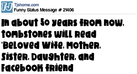 X says In about 50 years from now, tombstones will read 'Beloved Wife, Mother, Sister, Daughter, and Facebook friend