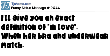 X I'll give you an exact definition of "in love". When her bra and underwear match.