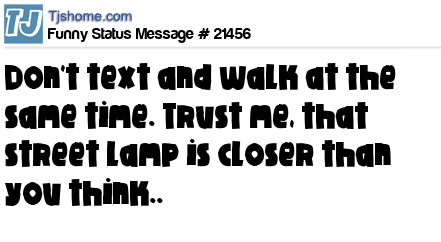 - # 21547 PUBLIC SERVICE ANNOUNCEMENT: Don't text and walk at the same time! Trust me, that street lamp... is closer than you think!