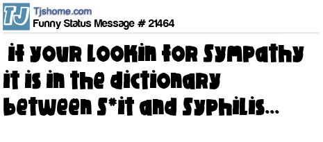 - # 38578 you want sympathy? look it up in the dictionary, its right between sh*t and syphilis.