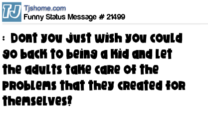 X : Dont you just wish you could go back to being a kid and let the adults take care of the problems that they created for themselves?
