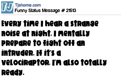 X Every time I hear a strange noise at night, I mentally prepare to fight off an intruder. If it's a velociraptor, I'm also totally ready.