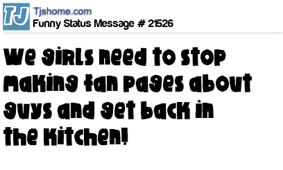 X says We girls need to stop making fan pages about guys and get back in the kitchen!