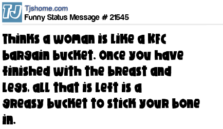 - # 7872 What have a woman and Kentucky Fried Chicken got in common, By the time you've finished with the breast and thighs, all you have is a Hot Stinky Box to throw your bone in.
