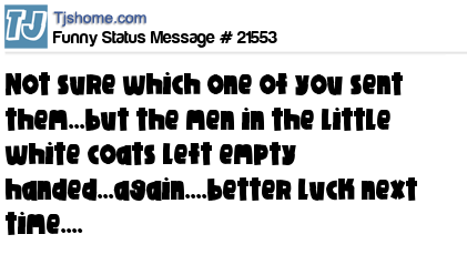 X says Not sure which one of you sent them...but the men in the little white coats left empty handed...again....better luck next time....