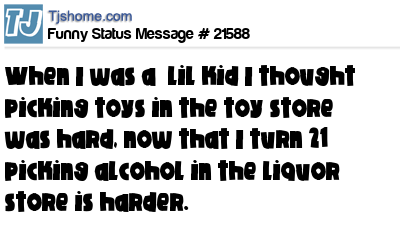 X says when I was a lil kid I thought picking toys in the toy store was hard, now that I turn 21 picking alcohol in the liquor store is harder.