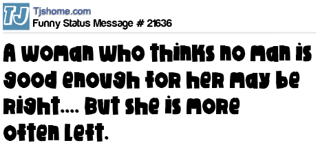 X says A woman who thinks no man is good enough for her may be right.... But she is more often left.