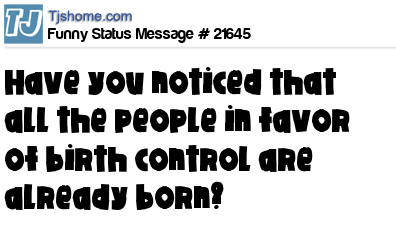 - # 206317 A baby was born laughing really hard with it’s fists closed! The confused Doctor unfolded it’s tiny fingers, & found a birth control pill.
