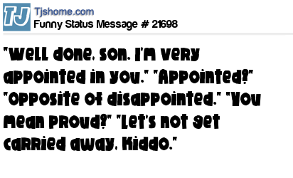 X "Well done, son. I'm very appointed in you." "Appointed?" "Opposite of disappointed." "You mean proud?" "Let's not get carried away, kiddo."