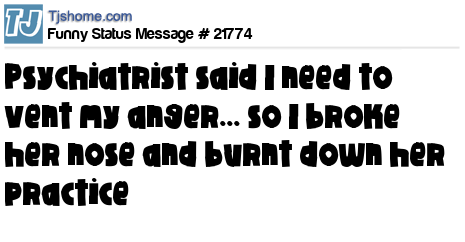 X psychiatrist said I need to vent my anger... so I broke her nose and burnt down her practice