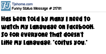 X has been told by many I need to watch my language on Facebook. So for everyone that doesn't like my language, "coitus you."