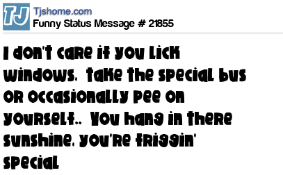 X says I don't care if you lick windows, take the special bus or occasionally pee on yourself.. You hang in there sunshine, you're friggin' special