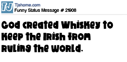 - # 50270 thinks God invented whiskey so the Irish would never rule the world!