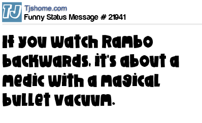 X says If you watch Rambo backwards, it's about a medic with a magical bullet vacuum.