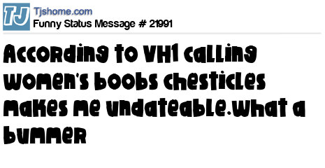 X says according to VH1 calling women's boobs chesticles makes me undateable.what a bummer