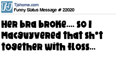 X Her bra broke.... so I Macguyvered that sh*t together with floss...