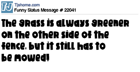 - # 36843 The old saying "The grass is always greener on the other side of the fence"....is it? Or maybe you just need to get up off UR lazy ass and mow the lawn, water it, pull some weeds, fertilize it, take care of your own grass and stop looking over the fence