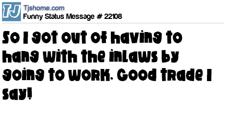 X is So I got out of having to hang with the inlaws by going to work. Good trade I say!
