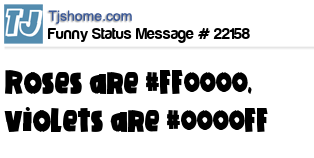 - # 14886 Roses are red violets are blue sugar is sweet and so are you, but the roses are wilting, the violets are dead the sugar bowls empty and so is your head