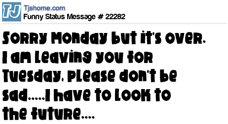 X Sorry Monday but it's over. I am leaving you for Tuesday, please don't be sad.....I have to look to the future....