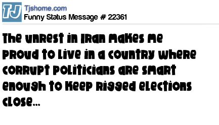 X is The unrest in Iran makes me proud to live in a country where corrupt politicians are smart enough to keep rigged elections close...